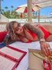 I love the material and the shiny color of the red. It’s super sexy and I also love how you can mix and match it with different style bottoms that come in the same color. I paired this with the shiny red classic scrunch bottoms with black and white polka dot straps.